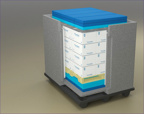 Remove the frozen packs from the freezer, and place every pack into the box in the positions indicated, and close the lid.